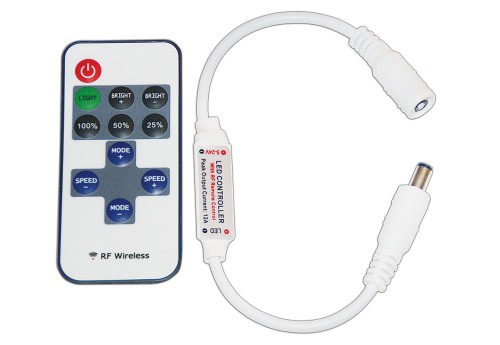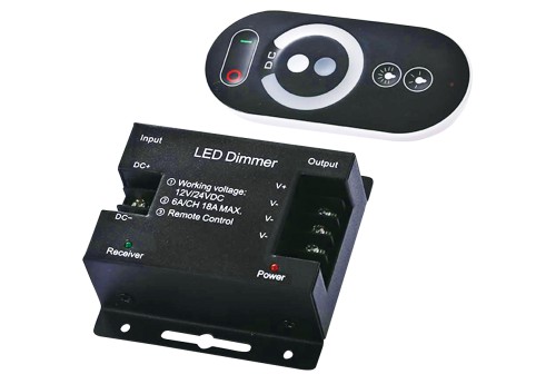 Τάση εισόδου: 12-24V DCΡεύμα εξόδου: 6A /κανάλι (18Α max)Ισχύς: 216W max(12V), 432W max(24V)Κατάλληλος για: Tη ρύθμιση φωτεινότητας ταινιών LED μονού χρώματος με ασύρματο τηλεχειριστήριο αφήςΘερμοκρασία λειτουργίας: -200C +600CΗ συσκευασία περιλαμβάνει: 1 RF-CONTROLLER DIMMER 18A, 1 RF ασύρματο τηλεχειριστήριο με εμβέλεια έως 30m σε ανοικτό χώρο με κουμπιά χειρισμού αφής color, bright, flashing speed, flashing modesΣημείωση: Για τη τροφοδοσία του τηλεχειριστήριου απαιτούνται 3 μπαταρίες AAA (δεν συμπεριλαμβάνονται)Διαστάσεις: 79x83x33 mm Βάρος: 0,35 Kgr