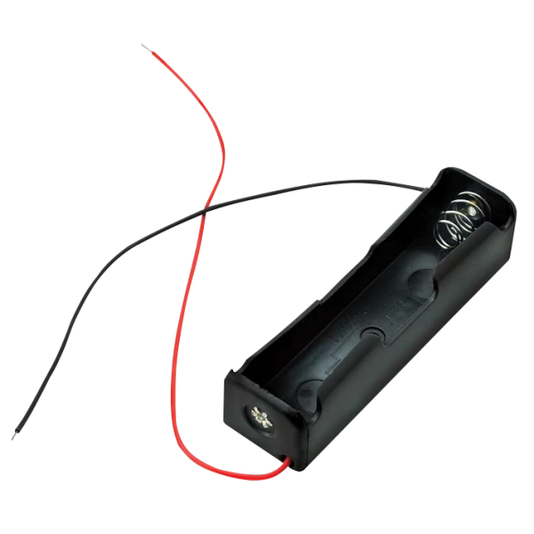 Θήκη μίας θέσεως για μπαταρία 18650(3,7V) με καλώδια σύνδεσης.