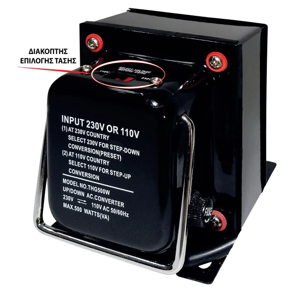 Τάση εισόδου / Εξόδου: 110V AC 50/60 Hz ή 230V AC 50/60Hz (επιλογή με διακόπτη)