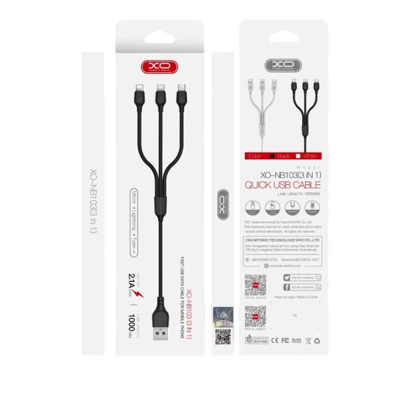 XO-NB103 Καλώδιο φόρτισης 3 σε 1 από USB A σε Lightning + Type C + Micro USB 1.2m