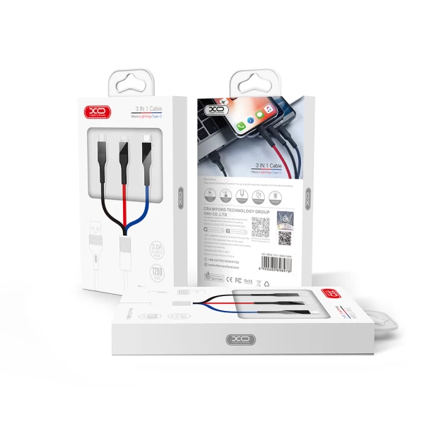 XO-NB54 Καλώδιο φόρτισης 3 σε 1 από USB A σε Lightning + Type C + Micro USB 1.2m