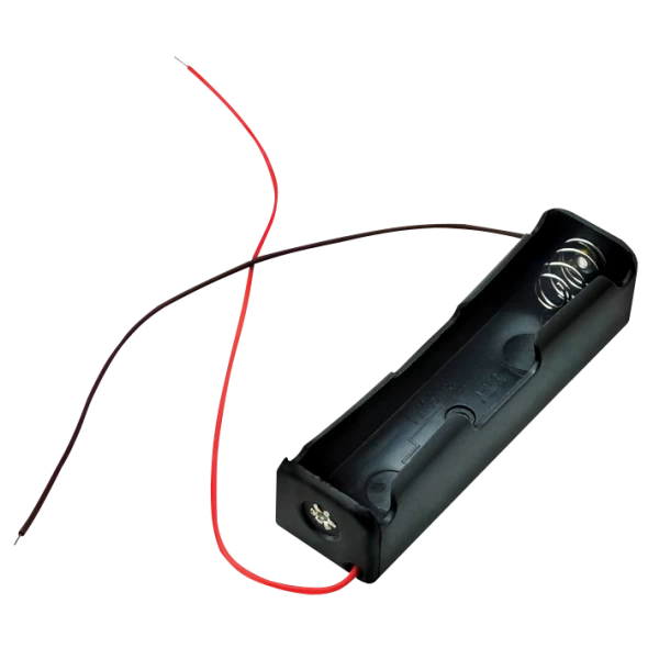 Battery holder for one 18650 (3.7V) battery with connection cables.