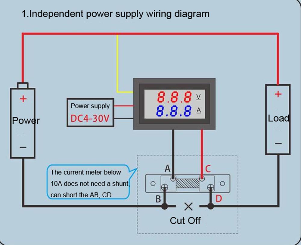 FC4-0-100V DC/0-10A DC Digital dual voltmeter 0?100V DC / ammeter 0?10A DC with built-in shunt
