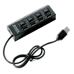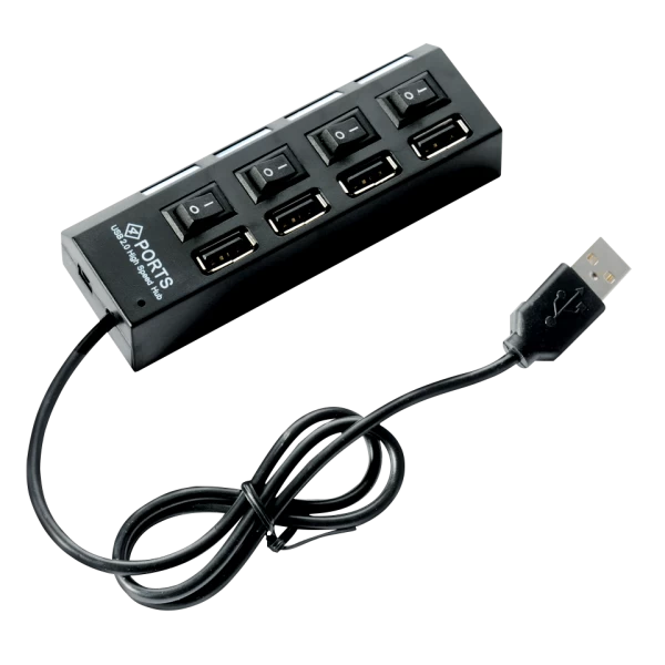 USB 2.0 HUB with 4 ports and ON / OFF switches for each port and indicative led light in each port